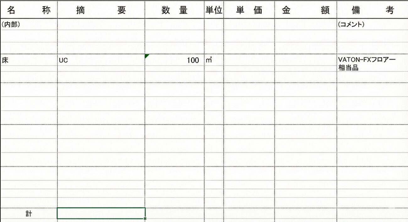 また、床やカウンターなど、標準的なウレタン樹脂ワニス塗り以上の耐傷性や耐薬品性が求められる部位については、特記において「床専用仕様(VATON-FXフロアー等)」であることを指定する必要があります。 適切な製品選定を特記で補足しない場合、将来的な塗膜の摩耗や剥離を招き、メンテナンスコストの増大につながるリスクがあります。
