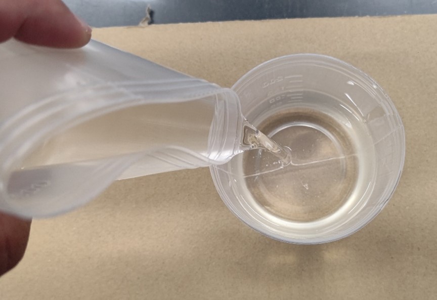 透明になったと思ったら、樹脂を別の容器に移し変えてまた混ぜるとよく混ざります。