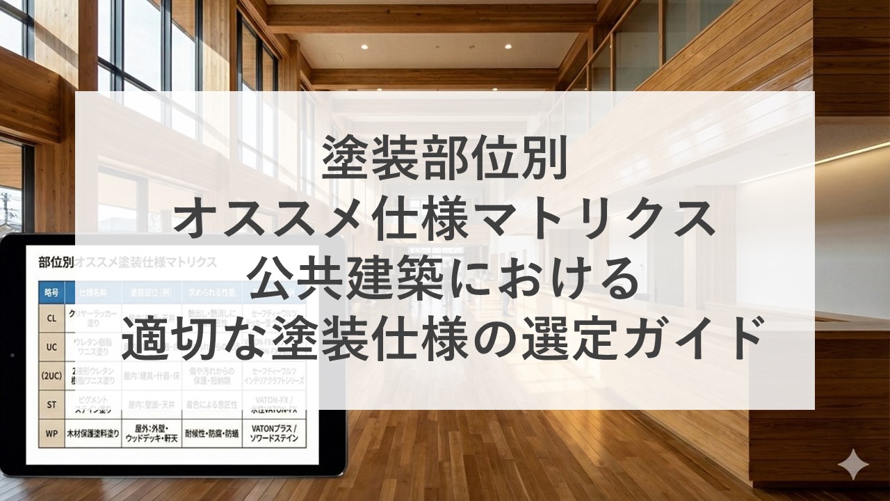 2025年現在、脱炭素社会の実現に向けた木材利用の促進は、建築設計における最重要テーマの一つとなっています。不特定多数が利用する施設においては、部位ごとに摩耗頻度や環境負荷が劇的に異なるため、適切な塗装仕様を選定することが、建物の長寿命化と美観を損なうリスクを回避する上で極めて重要です。