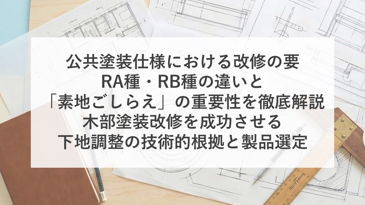 公共塗装仕様における改修の要:RA種・RB種の違いと「素地ごしらえ」の重要性を徹底解説~木部塗装改修を成功させる下地調整の技術的根拠と製品選定~